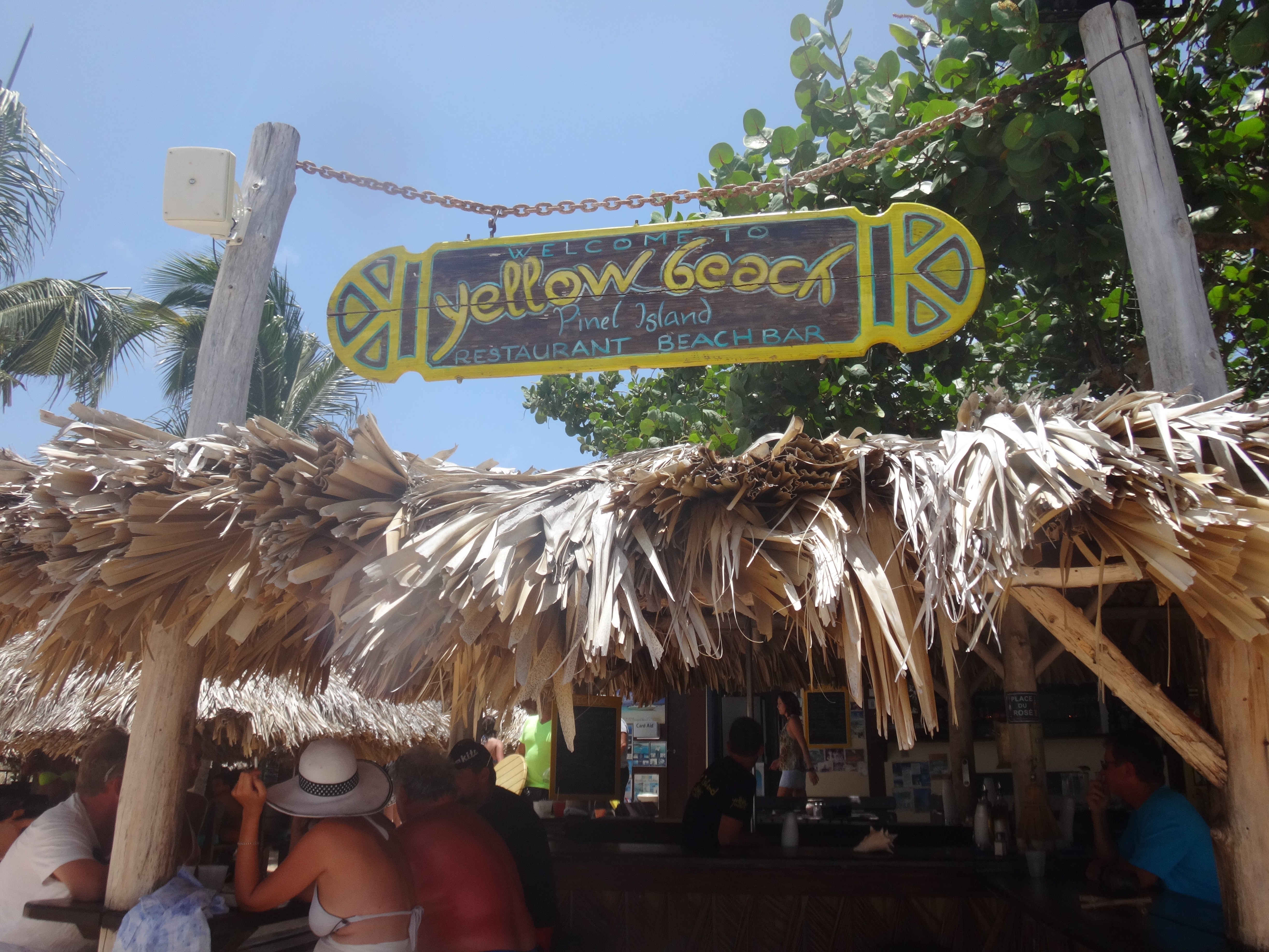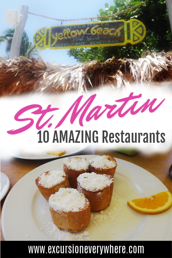 We’ve been able to eat at the Yellow Beach on Pinel Island Restaurant and Beach Bar twice because it’s the designated lunch spot for Robinson’s Speed Boat tour/ shore excursion. Both times we had a good meal and enjoyed the island setting. Pinel Island is only accessible by boat which is part of the fun about it. You can also get there by renting a kayak from Orient Beach, taking a ferry, or by boat tour. Our boat pulls right up to the island and you hop out in the shallow water and wade to shore.