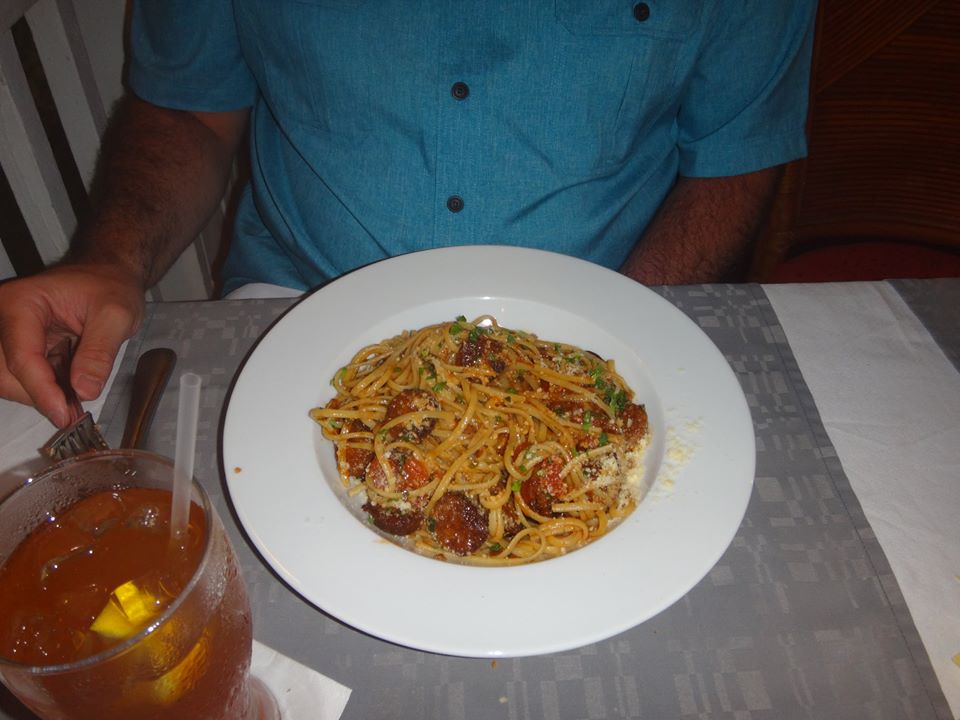 For our main course, we ordered two dishes, a beef bolognaise and another pasta with a spicy sausage so that we could share and try both. Both were very good, but there was so many other items on the menu, I would probably order something else the next time I visit, just to try them all. The portions were huge so we ended up taking half of the pasta back to our resort in to-go boxes. If you have children or weren’t that hungry, you could easily share your meals.