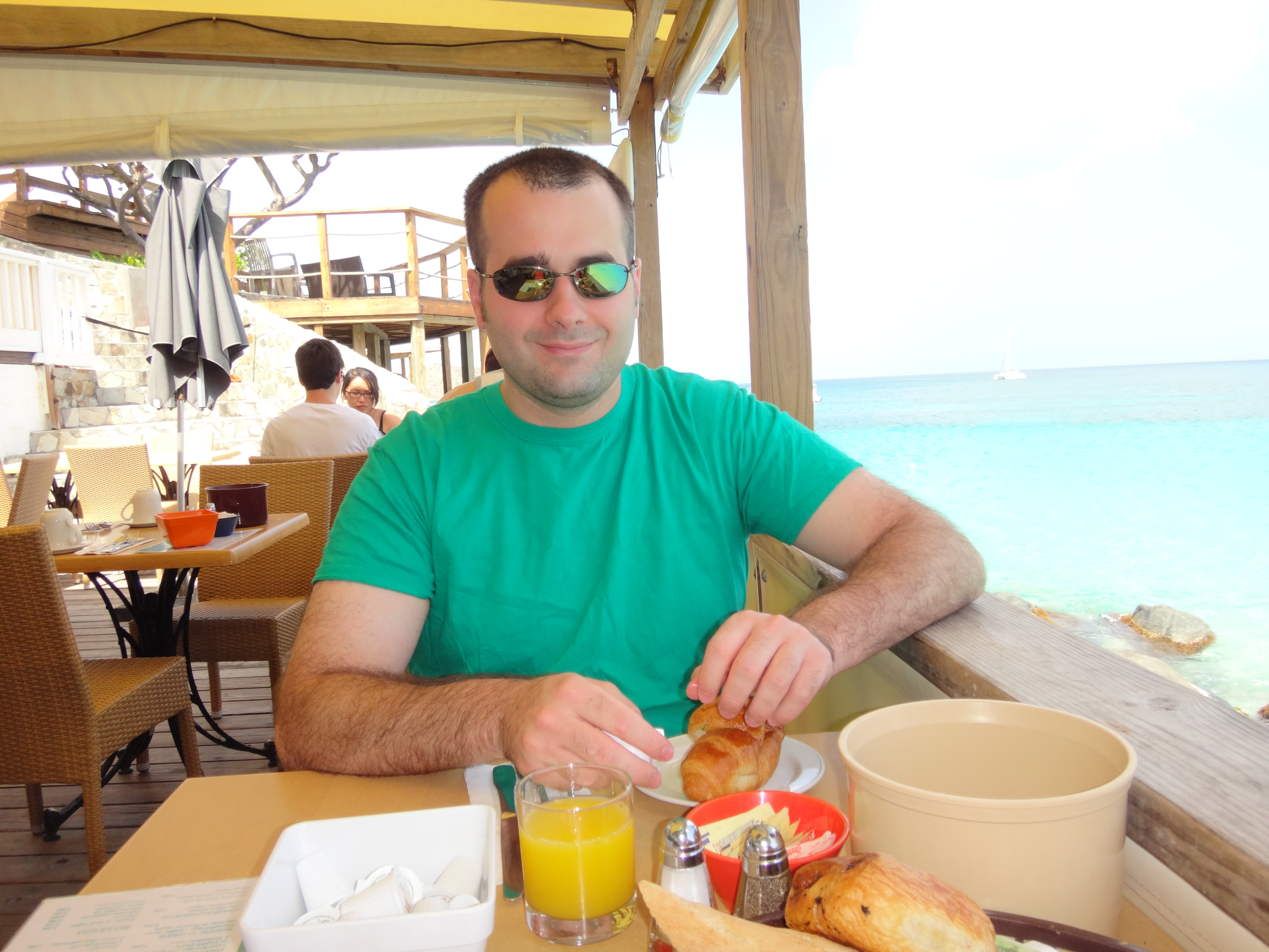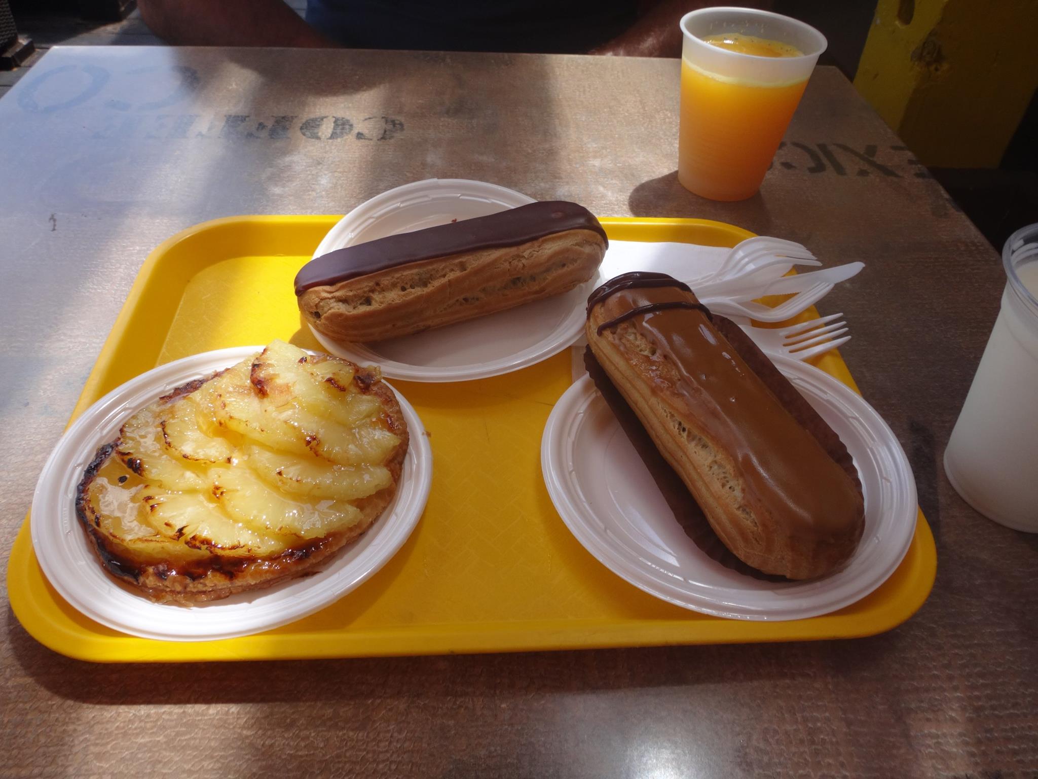 I ended up settling on a coffee-flavored eclair and Brian picked chocolate. And then we split a pineapple pastry. We sat outside on the patio and enjoyed the breeze. I’m an American, so I might slightly prefer donuts to eclairs (sorry!), but all in all it was a great breakfast and one I highly recommend to anyone with a Wednesday morning to spare in St. Martin!