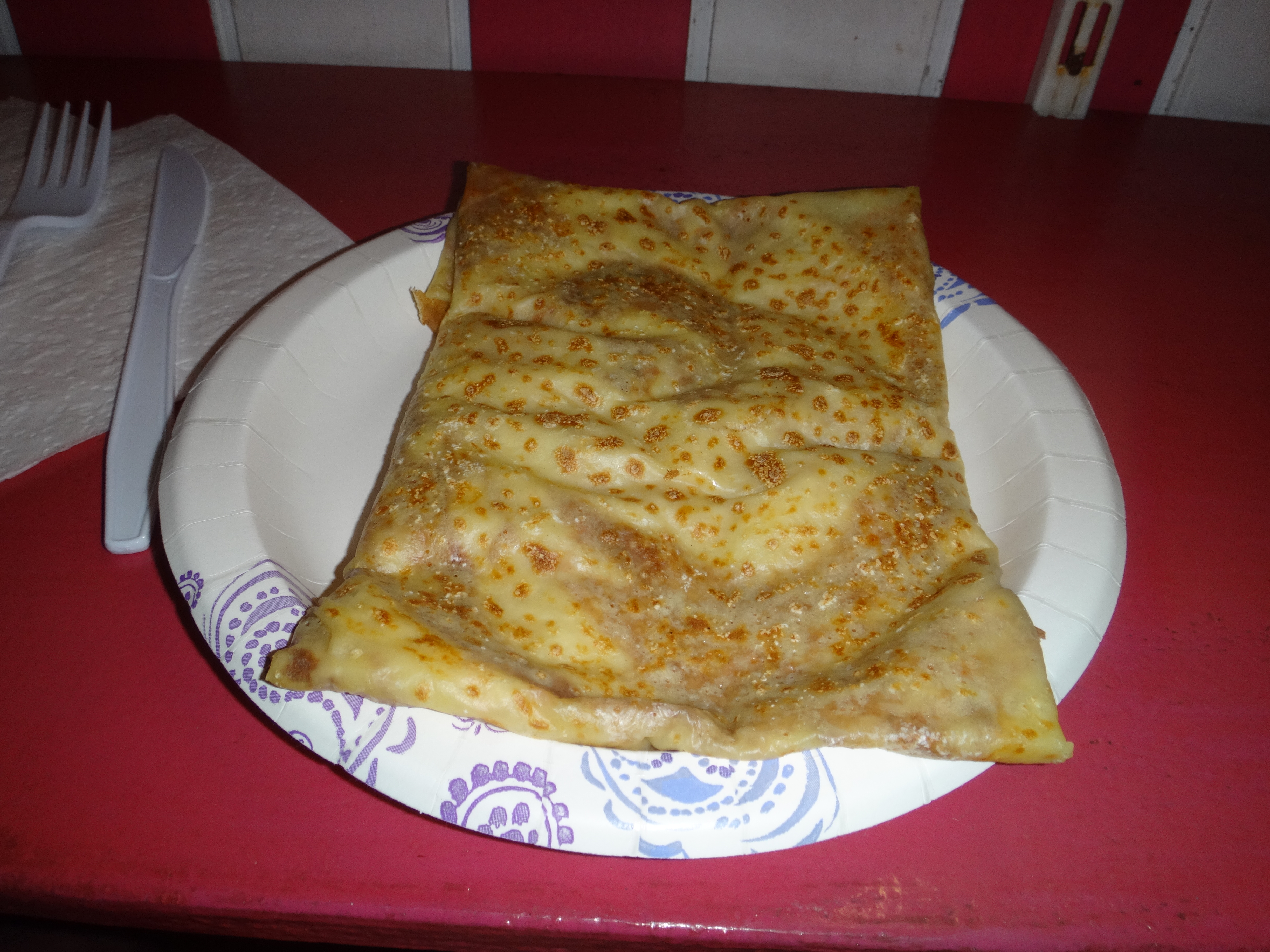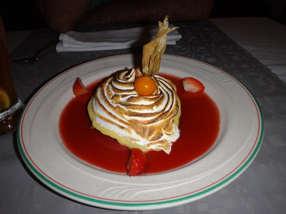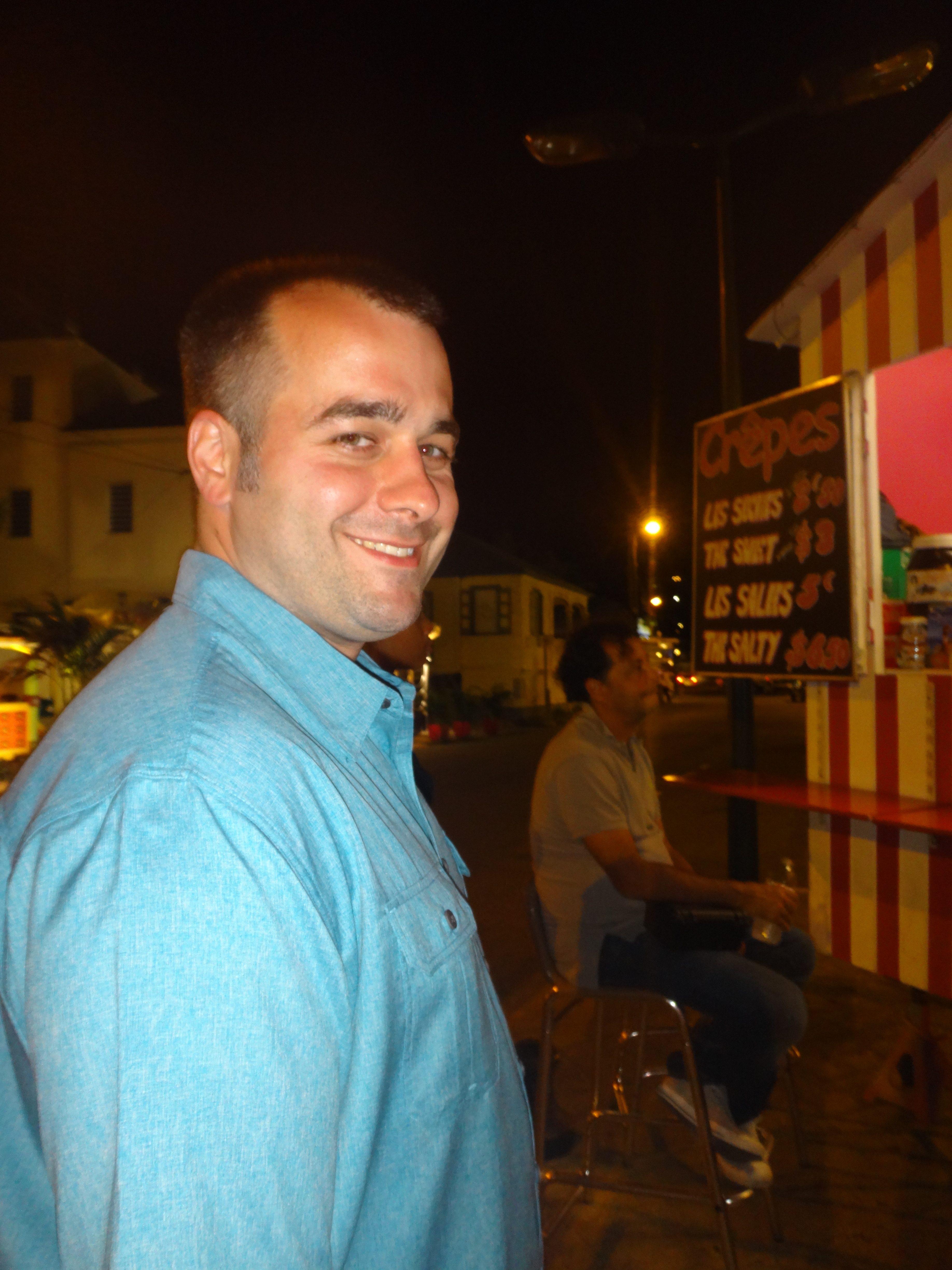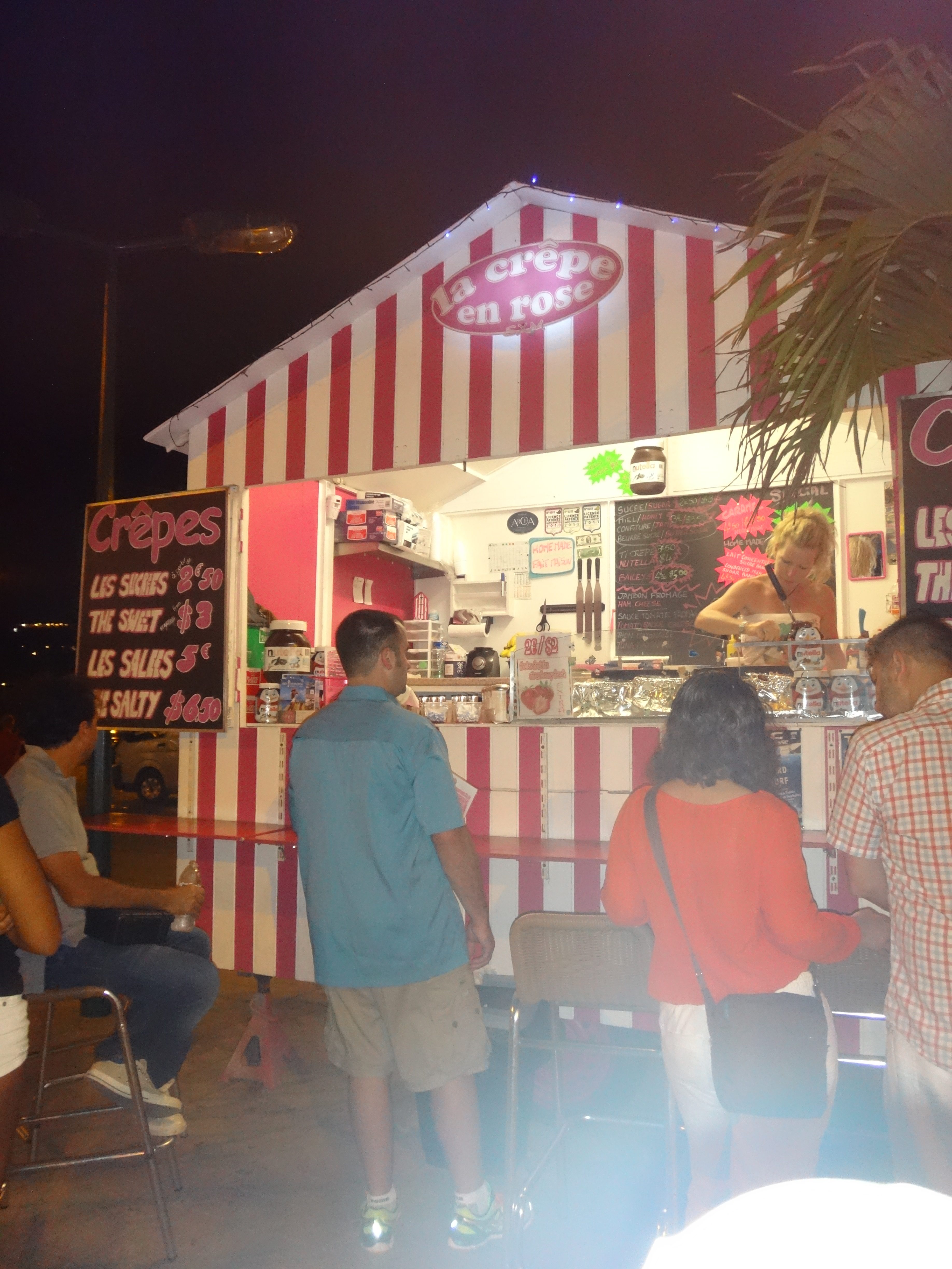 Regardless of what you do for dinner in St. Martin, I have to insist that you stop at least once (or once a day) at La Crepe en Rose, an adorable little crepe stand in Grand Case. It’s located in the corner of the parking lot just across from Calmos Cafe. For as little as $3 you can enjoy a delicious dessert crepe or for a couple dollars more you can get a fancier version. Each crepe is freshly made right in front of you, so feel free to come up with any combination of filling you desire. They also had savory crepes which make a yummy, inexpensive dinner substitute with their choices of fillings including tomato, ham and cheese! I remember we tried a few different versions of the dessert crepes (spread out over the week, we’re not crazy!) including a nutella crepe, a salted carmel crepe, and Brian loved the raspberry one. And then I also remember getting a savory tomato and cheese crepe one night as well! Yum!