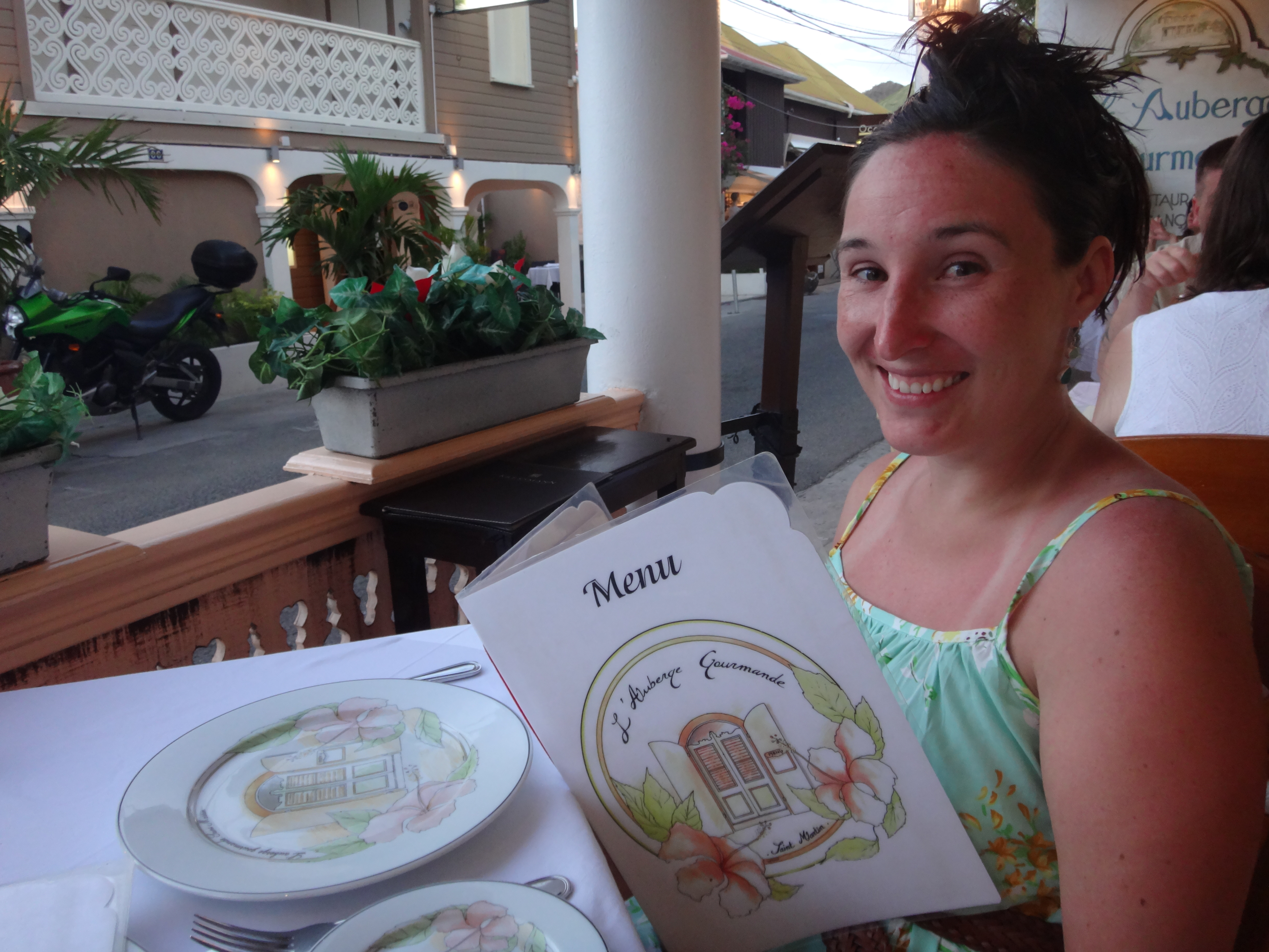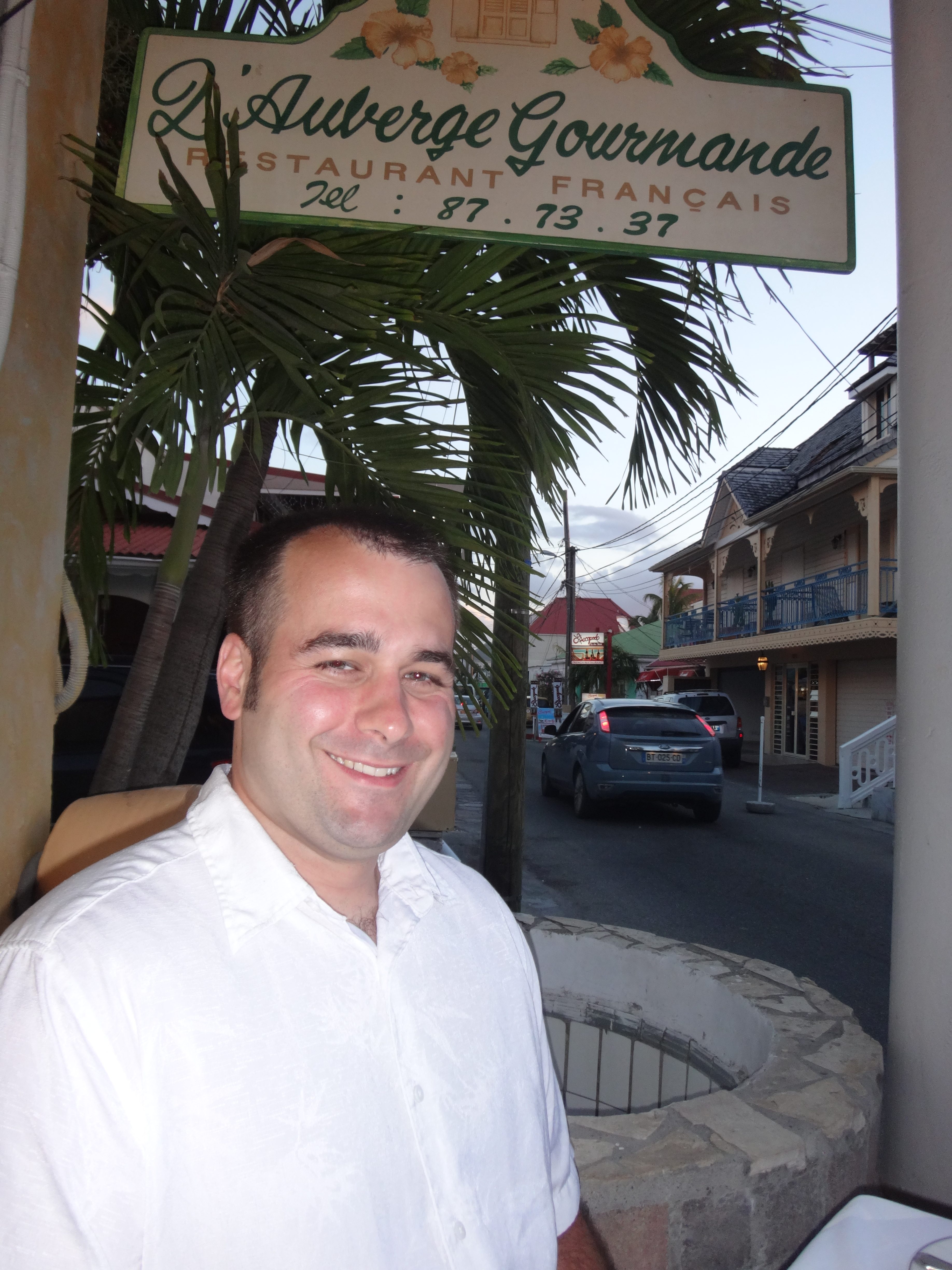 When we visited St. Martin/ St. Maarten in 2015, one of the restaurants that I had read a lot about but was unsure about trying was L’Auberge Gourmande (Translation: “The Gourmet Inn”). I grew up in the Midwest where just about every meal consisted of meat and potatoes, and therefore I happily existed on chicken fingers and cheeseburgers when going out for dinner for the first 25 years of my life. It’s only in the last few years that I’ve started to get more adventurous. So keeping that in mind, I was a bit unsure about the gourmet French menu of L’Auberge Gourmande, so much so that I didn’t even make a reservation for the place before visiting. If you are visiting, I recommend making a reservation before your trip, we just happened to go in May which is the off-season and didn’t need one.
