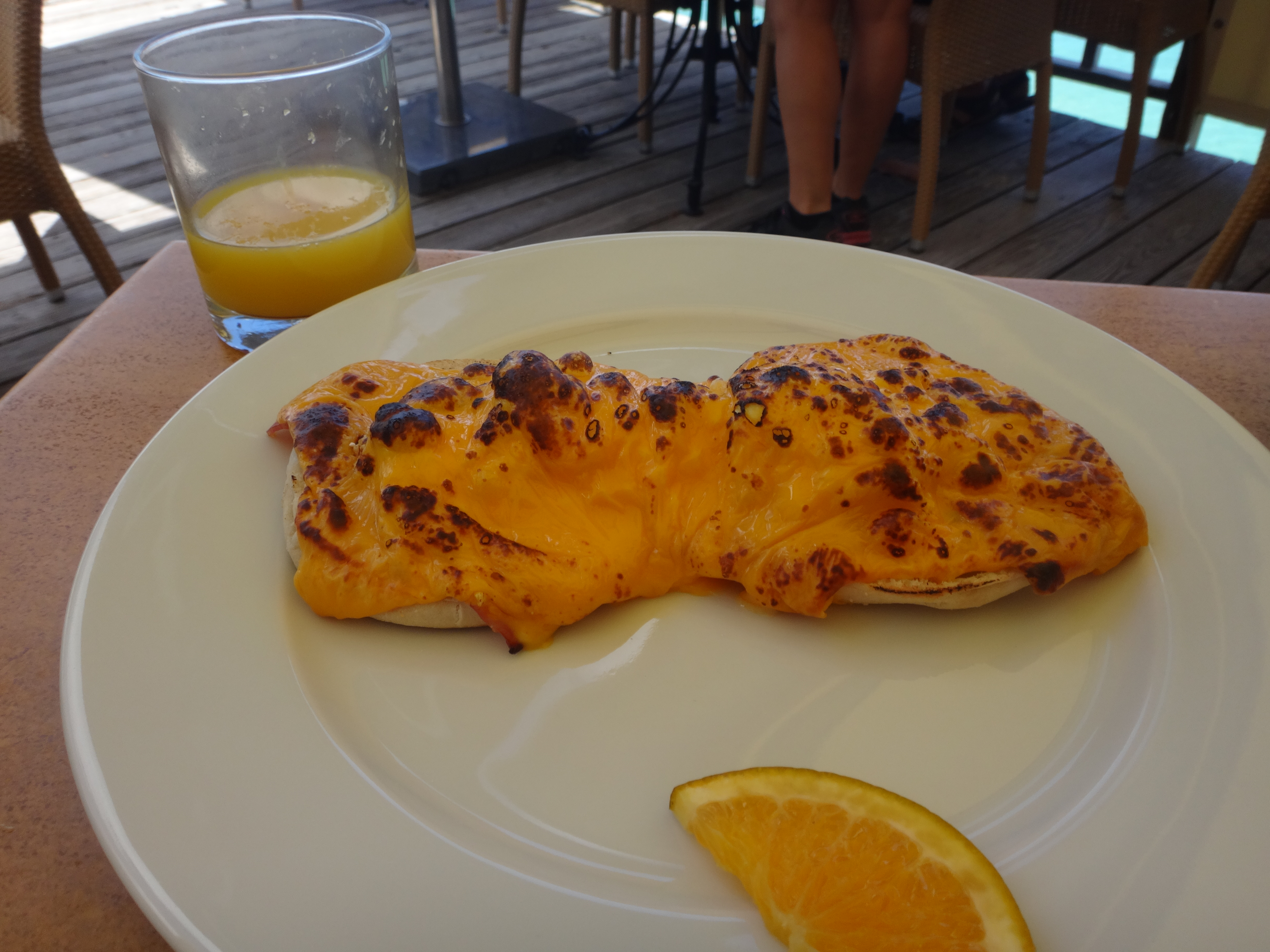 breakfast. Luckily, we were staying at the Grand Case Beach Club (I highly recommend!) and were introduced to the Sunset Cafe, a very good, inexpensive restaurant with a beautiful ocean view. During our 5-day stay in St. Martin, we ate breakfast at the Sunset Cafe for every day except one (the day we went to Marigot in search of a real French bakery). Hotel customers receive a complimentary basket of pastries which is considered a continental breakfast. That’s how they lured us in. Once you get there and look at their menu and the ridiculously inexpensive prices, you have to order more, which is what we did. Every single day.