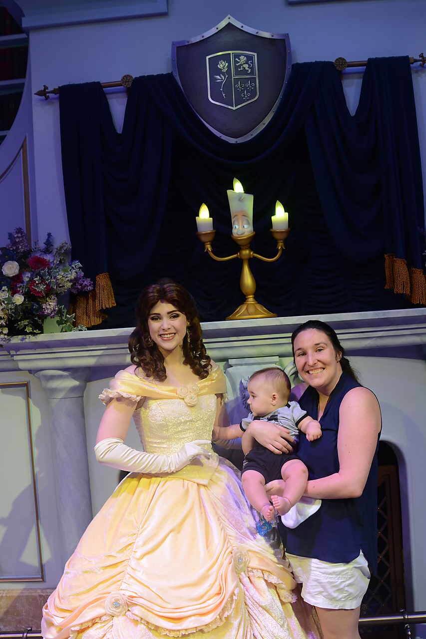 We used our 3 Disney Fast Passes to ride (1.) Dumbo (Mommy’s choice), (2.) It’s a Small World, and (3.)  to meet Mickey Mouse (Jackson tried to eat Mickey’s nose!). We also got to ride Prince Charming’s Carousel and to meet Princess Belle (yea, that picture is awkward….!). The only ride that we wanted to do and didn’t get to was the Mad Hatter’s Teacups. The line for the Teacups was never that long (Max 40 min wait on a Saturday of a Holiday weekend), we just didn’t make it to that one (see Fast Pass Tips below).