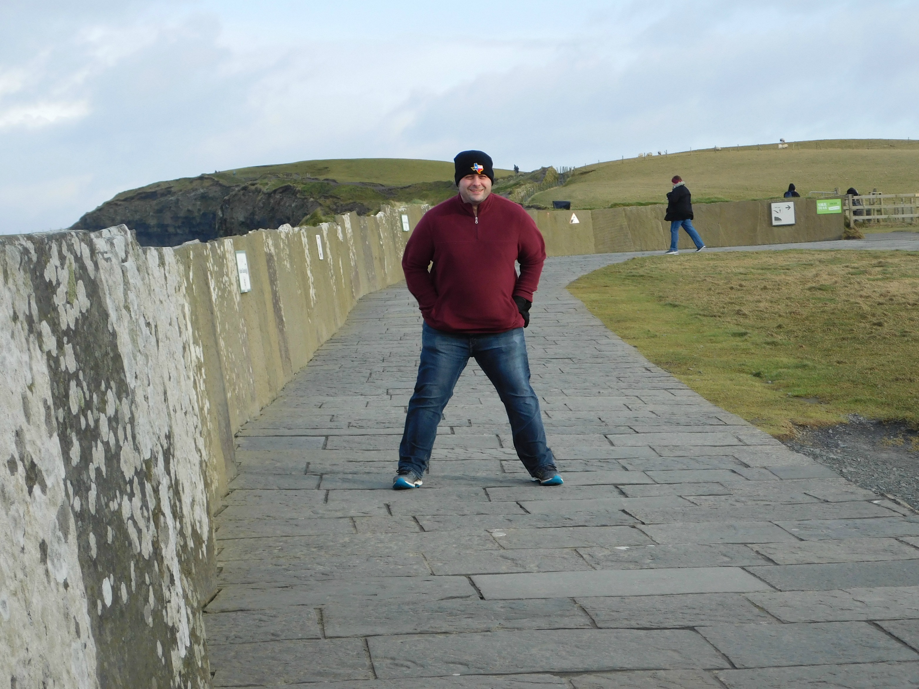#18 – Cliffs of Moher was crazy windy. I mean crazy. This is Brian bracing himself against the wind.
